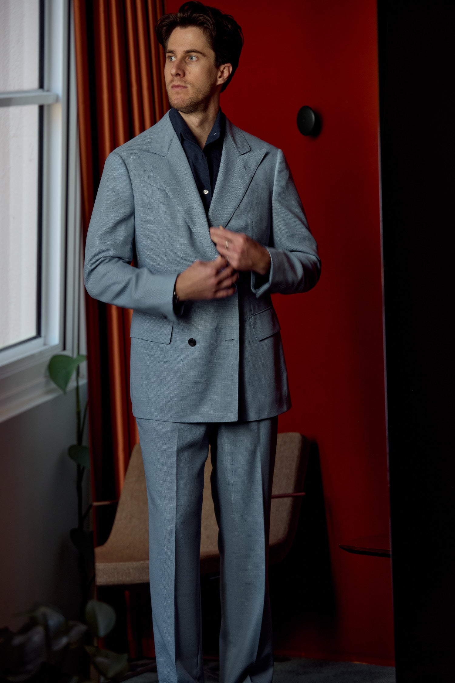Pre-Wedding Party: Sky Blue Double Breasted Suit